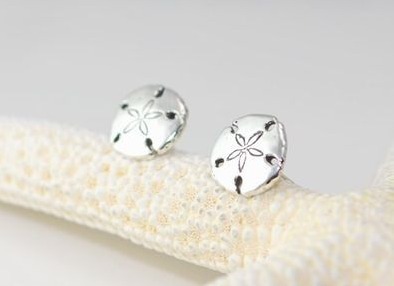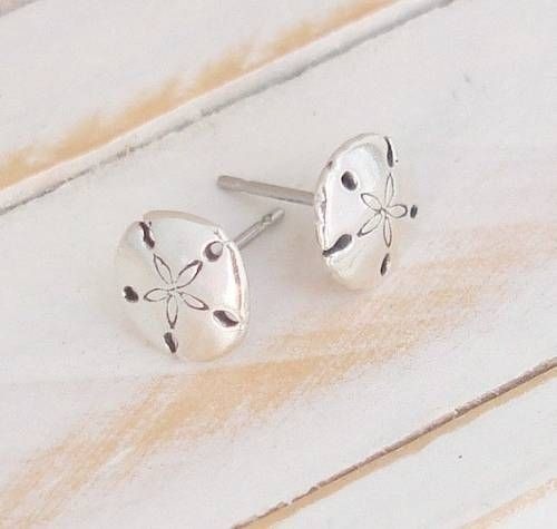 These dainty sterling silver sand dollar studs ( also known as pansy shells) measure about 9mm across, making them perfect and comfortable for every day wear.